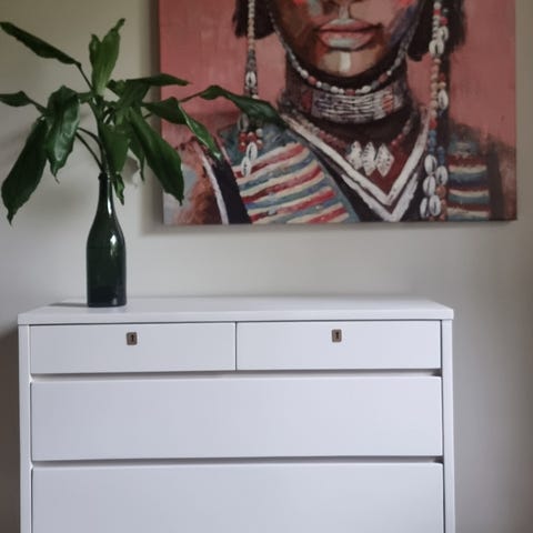 Asko vintage-lipasto, tiikkiviilu, 1960–70-luku