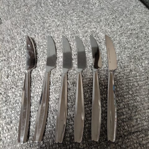 Hyväkuntoiset Carelia voileipähaarukat / alkuruokahaarukat 6kpl. Pituus n. 15,5cm.