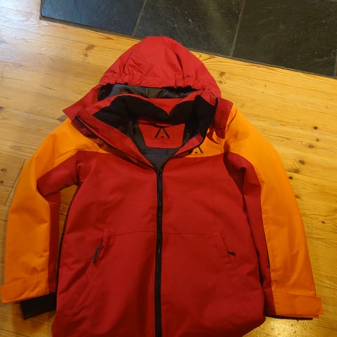 Ruskea laskettelutakki. Helmassa lumilukko. Hihassa lipputasku. Oikein hyvä lasketteluun. Sopii noin 14-15 vuotiaalle.