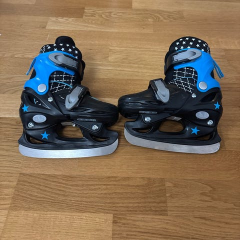Hyväkuntoiset ja vähällä käytölle olleet lasten luistimet. Koko säädettävissä; 25-28.