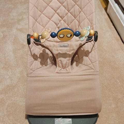 Hyväkuntoinen Baby Björn sitteri lelukaarella.