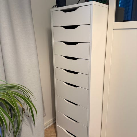 Myynnissä Ikea Alex-laatikosto viidellä vetolaatikoilla.