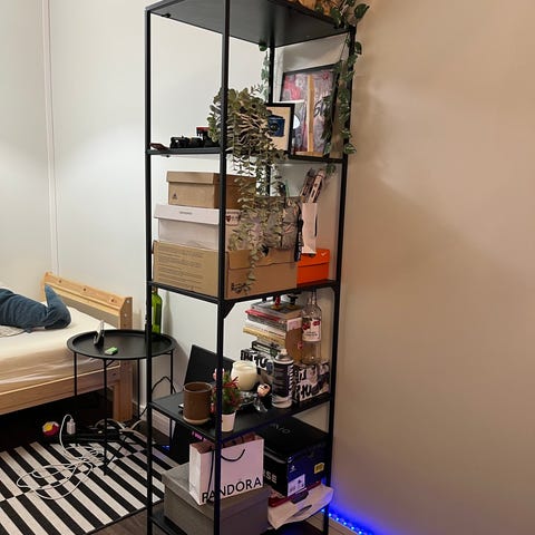 2x samanlaiset metallihyllyt. Takana myös ruuvinreiät, joten saa seinään kiinni. Itse olen käyttänyt pienenä pöytänä. 15e/kpl