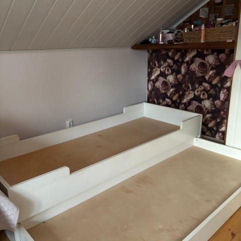 Unipuu sänky lapselle, molempiin päihin kirjahylly ja lisäksi löytyy reunan korokepala jottei juniori pyöri sängystä lattialle. Tämä on purettu ja kasattu useamman kerran joten voi vaatia hieman tee-se-itse henkeä jotta kaikki ruuvit saa tiukattua.