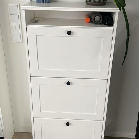 Myydään Ikea Hemnes kenkäkaappi. Muuten hyvässä käytetyssä kunnossa, mutta toinen jalka ottanut vähän osumaa (näkyy kuvassa).