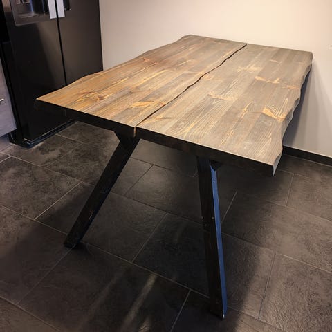 6 hlö ruokapöytä, tai vaihtoehtoisesti todella väljästi neljälle henkilölle isoilla tuoleilla. Tuolit myös ostettavissa erikseen.