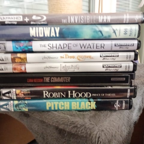 Myydään kuuden elokuvan 4K Ultra HD -paketti. Jokaisen elokuvan mukana on myös perinteinen Blu-ray -levy, joka sisältää elokuvan Full HD:nä. Kaikkien elokuvien levyt ja kannet ovat uudenveroisessa kunnossa. Kaikki elokuvat ovat pohjoismaisia julkaisuja ja sisältävät suomenkielisen tekstityksen, paitsi "1917" joka on brittijulkaisu ja ei siis sisällä suomenkielistä tekstitystä (tätä ei ole käsittääkseni julkaistu 4K-muodossa suomenkielisillä tekstityksillä koskaan). Kaikki 4K-levyt ovat aluekoodivapaita ja Blu-ray -levyt "Region B" (eurooppa).