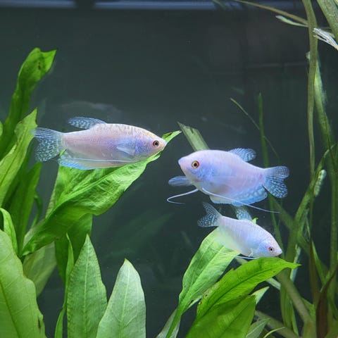 Tästä 2 upean väristä aikuista herosta, vanneahventa, uuteen kotiin. N 14cm. Saat halutessasi mukaan myös pari monnista ja kasvit.