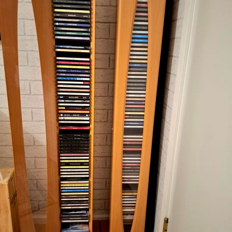 Koivuinen CD/DVD Kaappi. 100 CD levylle ja 38 DVD levylle. Reiät seinälle kiinnittämistä varten.