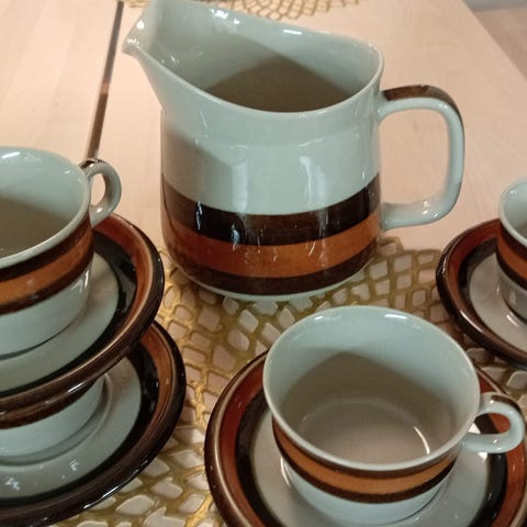 Kannu ja neljä kuppia yhteishintaan 30,00 euroa.