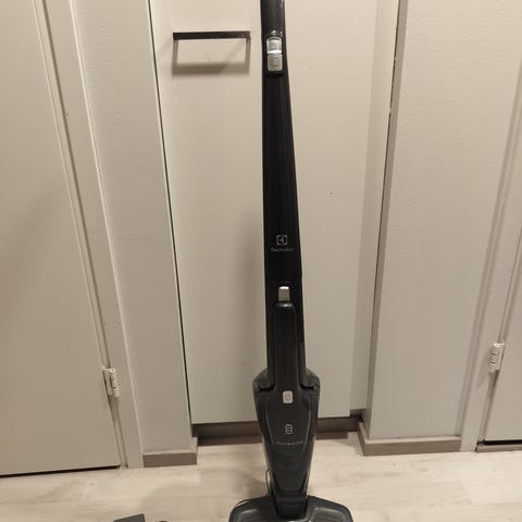 Electrolux Ergorapido 2-in-1 langaton pölynimuri, jossa yhdistyvät kätevä käsipölynimuri ja pystymallinen imuri. Imuri on musta ja valmistettu kestävästä muovista. Sopii monipuoliseen kodin siivoukseen ilman johtoa.