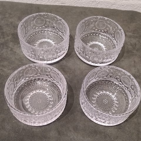 Nanny Stillin Riihimäen Lasille suunnittelema Grapponia-kannu ja 5 juomalasia. Väri kirkas. Vain nouto. Mikkelin lisäksi Iisalmi, Jyväskylä, Jämsä ja Rovaniemi.