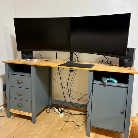 Myydään muuton tieltä pöytä, jossa irralliset IKEAn pöydänjalat ja niiden päällä pöytälevy. Ei olla kiinnitetty, mutta ei ole liikkunut. Korkeus säädettävä. Pöydässä takareunassa kulumaa, kohdasta josta irrotettu led valonauha, näkyy kuvassa. Muuten hyväkuntoinen. Nouto Oulun Kastellista, nopein nouto etusijalla. Myös työtuoli myynnissä.