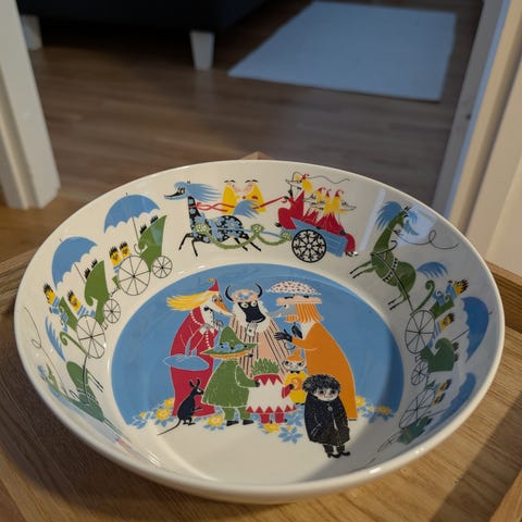 Muumi iso tarjoilukulho, Alkuperää kunnioittaen. Pientä käytönjälkeä.