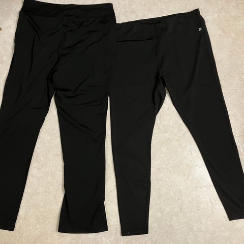 Mustat, korkeavyötäröiset naisten urheilutrikoot kevyttä ja joustavaa materiaalia.molempien koko 52/54.