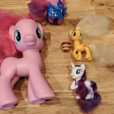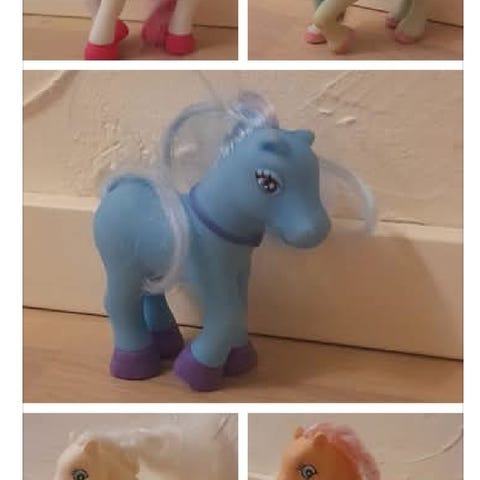 Enemmän ja vähemmän leikityssä kunnossa olevia My Little Pony - tai muita samantyyppisiä ponileluja könttänä (ensimmäisessä kuvassa kaikki).