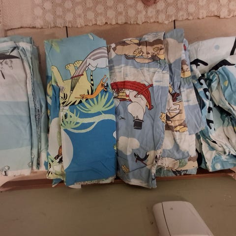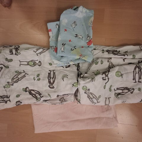 Hyväkuntoisia Finlaysonin petivaatteita lapselle. Koko n. 150 cm x 114 cm. pussilakanaa.