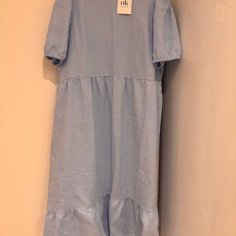 Nakoan pellavakerrosmekko, koko XXL. Uudenveroinen, muutamasti käytetty. Ihanaa, ohutta ja kauniisti laskeutuvaa pellavaa. Sivusaumassa taskut. Väri lupiini. Ovh 139,90€.
