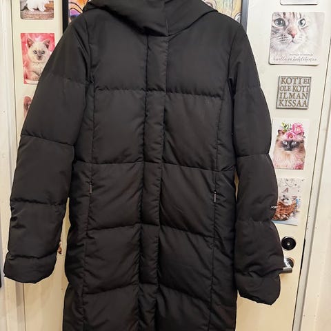Joutsen Viivi Talvitakki, untuvaa, väriltään musta ja naisten koossa M. (Sanoisin että vastaa kokoa 40).