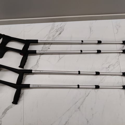 Kerran ulkona käytetyt säädettävät kyynärsauvat. Merkki Donjoy. Nämä piti lunastaa itselleen eikä voi palauttaa.