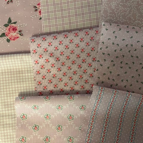 Puuvillakangaspalat, 7 kpl, tilkkutyö/käsityö/askartelumateriaalia