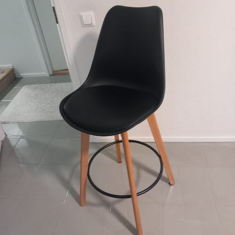 Baarijakkara säädettävällä korkeudella. 76cm ylhäällä ja alhaalla 56cm ja penkin leveys 39cm. Hyvä kunto ja täysin ehjä.