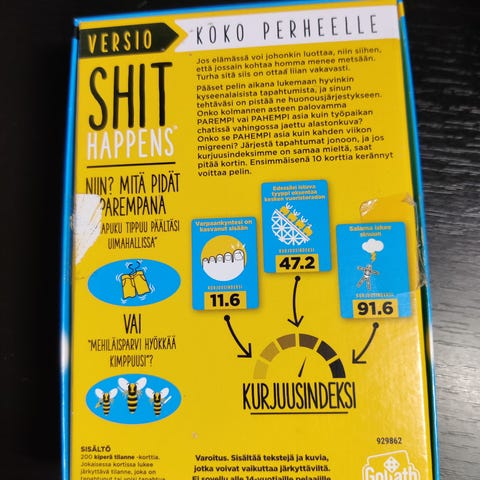 Kerran pelattu, kaikki osat tallella. Kannessa on pientä tekstuuria, kuten kolmannessa kuvassa näkyy.