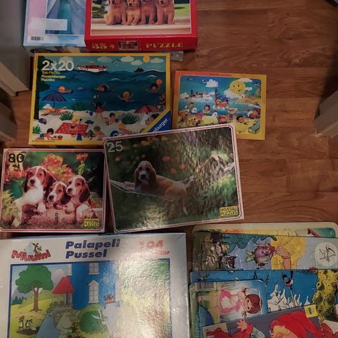 Myydään kuvan palapelit. Kaikki palat tallessa