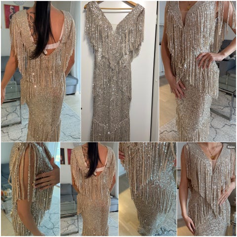 Myydään upea kulta/beige mekko kokoa 40 (M), valmistettu 100% silkistä. Mekon OVH. 3000€ Kuvassa olevan henkilön pituus on 175cm ja 61kg.