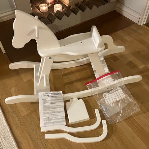 Myydään oheinen Pinolino keinuhevonen. Muuten ehjä ja erittäin hyvässä kunnossa, mutta istuinosaa moukaroitu (ks. kuva) jossain vaiheessa elinkaarta ja tullut pienehkö lommo.