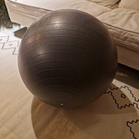 Hyväkuntoinen, vähällw käytölle jäänyt ilmatäytettävä harmaa jumppapallo ”vedettävillä kahvoilla”. Treenaa yläkroppaa vaikka pallon päällä istuen. Myydään täytettynä.isohko.