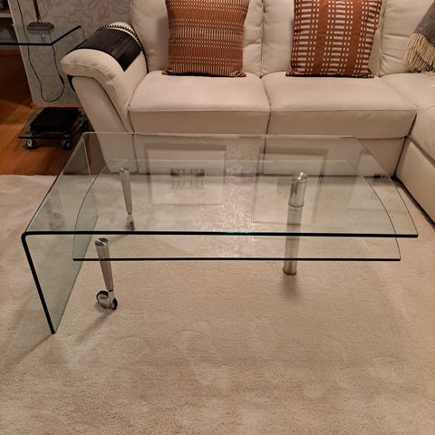 Kruunukalusteen sohvapöytä jossa lasinen kansi