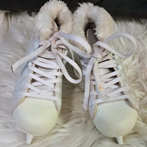 Lasten luistimet koko 25. Kunto ihan ok, jotain käytön jälkeä löytyy, mutta ehjät.
