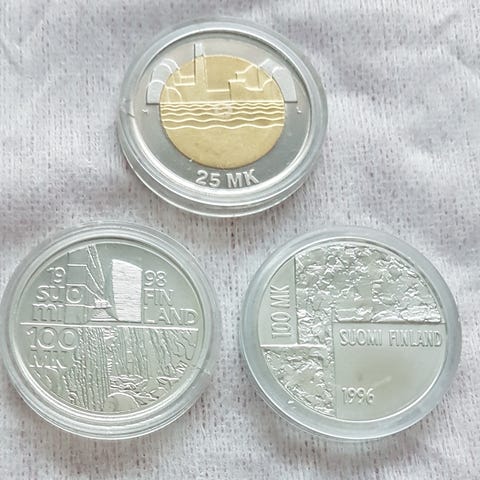 Suomalaisia hyväkuntoisia 2€ juhlarahoja