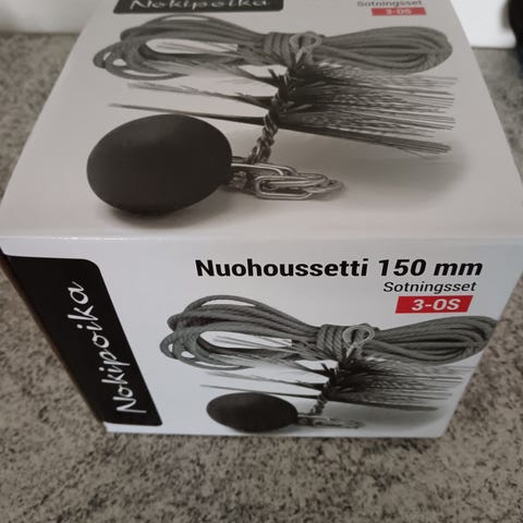 Iso nitoja laatikoitten yms. niittaamiseen. Iso laatikko nitojaan sopivia niittejä mukaan. Laitettu reilusti rasvaa varastoon viedessä, joten vaatii puhdistuksen ennen käyttöä.