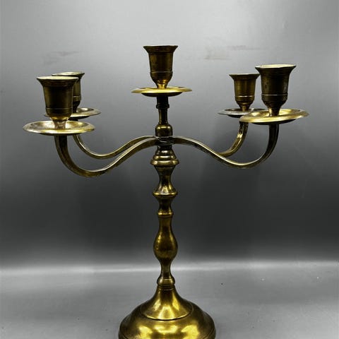 Messinkinen kynttelikkö, jossa 7 kynttilänpidikettä. Koristeellinen muotoilu ja jalustallinen tuki. Korkeus 43cm, leveys 50cm Nouto ja käteismaksu tai mobilepay noudettaessa viiskulmasta, Punavuori, Helsinki.