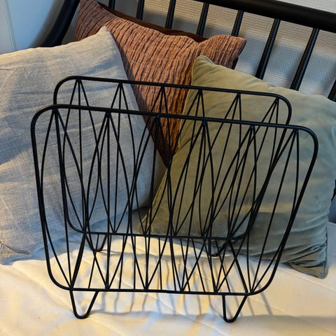 Valkoinen puinen lehtiteline.