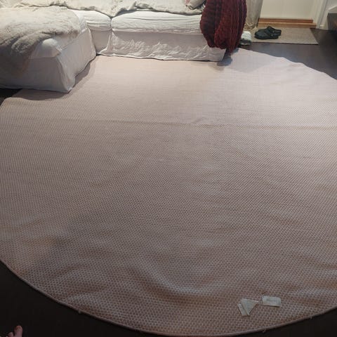 Noin vuoden vanha villamatto, halkaisija 240cm. Meillä ei ole lemmikkejä ja mattoja ei ole laikkuja tai muuta jälkeä.