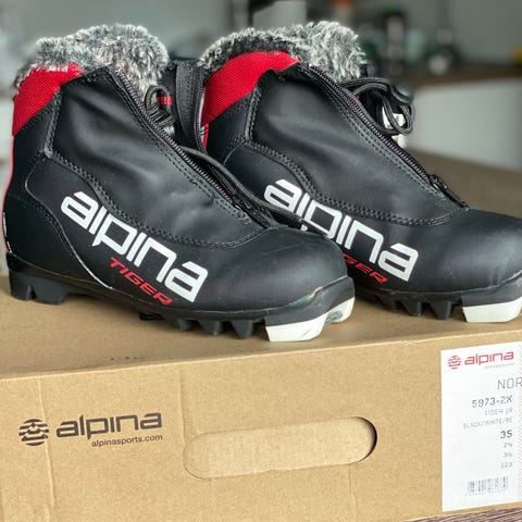 Alpina hiihtokengät mustana, koko 36. Kengät ovat tarkoitettu hiihtoon ja niissä on pitävä pohja. Materiaalina on käytetty kestäviä ja hengittäviä materiaaleja.