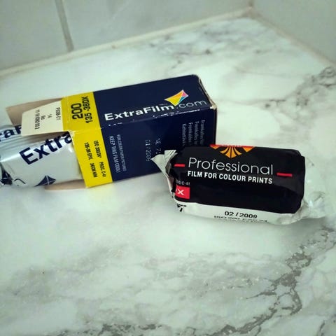 Kaksi soikeaa filmipurkkia, loput ovat pyöreäkantisia.
