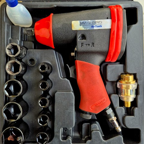 Kuvan mukainen pulttipyssy ja 6ah akku ja pikalaturi, konetta käytetty muutamiin renkaan vaihtoihin sekä vetoakselin vaihdossa toimii ja jaksaa vääntää. Takuuta jäljellä 2.5v