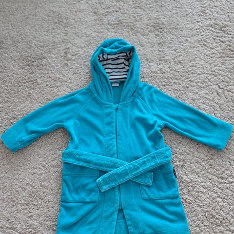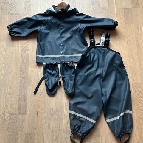 Polarn o Pyret :n keltainen sadetakki, jossa pieniä sammakon kuvia. Takki on täysin ehjä, mutta jonkin verran tummentumaa ja likaantumista löytyy. Isoimmista ja selkeimmistä tahroista otin lisäkuvat. Tahroja ei ole erityisemmin yritetty pestä pois, että voi olla että jollain aineella lähtisivätkin. Eläimetön ja savuton talous. Koko 86/92.