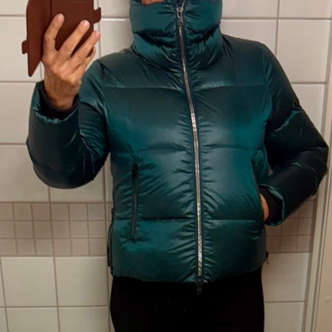 Kuin uusi lyhyt untuvatakki, tummansininen ja vähän kiiltävä pinta. Napit edessä ja taskuissa vetoketjut. Katso tarkemmin kokomerkintä . Tarkemmat mitat kuvassa. Nouto Raahesta tai kulkeutuu mukana Ouluun ja Oulu-Kuusamo välille ja postissakin voin lähettää. Katso myös muutkin ilmoitukseni.