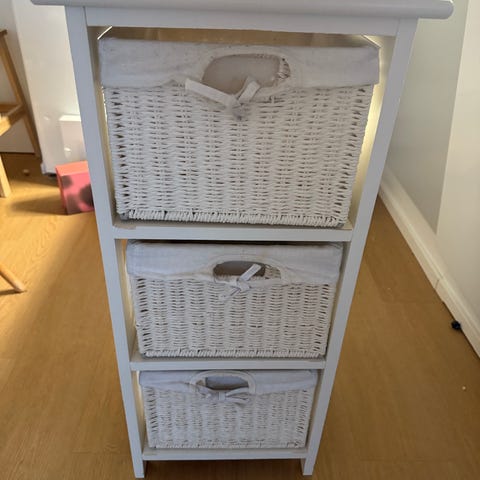Lipasto OURE 3 koria valkoinen. Massiivipuu ja MDF. L36 x K76 x S37 cm.