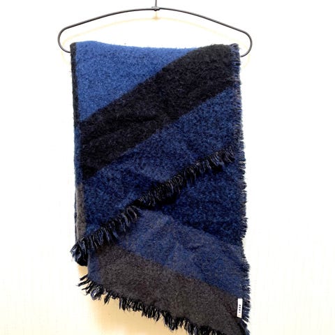 Täysin uudenveroinen kaulaliina/ asuste. Materiaali merkintää en löytänyt: Samettisilkki. Ostettu merkkiliikkeestä. Väri: Syvän sininen.