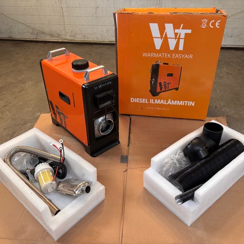 Autoterm Air 4D ilmankuivain, teho 40 W, käyttöjännite 12 V. Laitteessa on dieselkäyttö ja se on suunniteltu ilman kuivaamiseen. Mukana toimitetaan tarvittavat asennustarvikkeet.