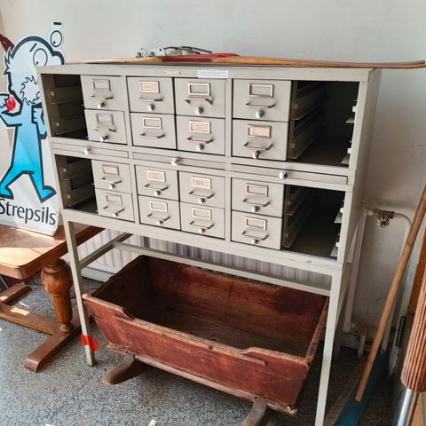 Kunnollinen vintage lokerikko puoli antiikkia. Tumm.vihreä. A4 lomakkeille Painava. . Pysyy hyvin paikalla .Ehkä rautaa? Kolme laatikkoa jotka aukeavat paikallaan. Ei tarvitse nostaa erikseen. Käytetty hyväkuntoinen
