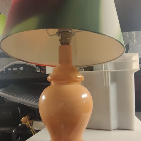 Mosaiikkilasinen kilpikonnalamppu. 19 cm pitkä. Johto n. 170 cm. 4 W led jota himmennetty kuultomaalilla (kynttilälamppukanta). Nouto tai postikulut ostajalle.