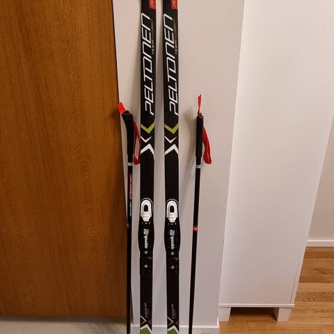 Myydään Peltosen G-Grip Tiger pitopohjasukset 140 cm sekä sauvat 95 cm, hp 50 euroa.