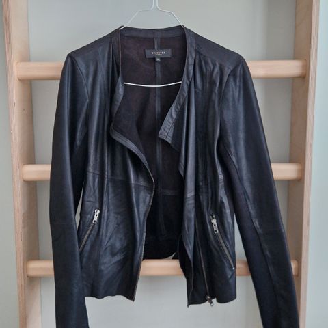 Musta Selected Femme -merkin nahkatakki, koko 40, ei kulumaa. Hihansuissa vetoketjut.